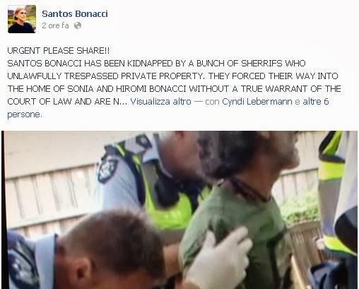 Pare che Santos Bonacci ( o chi per lui) abbia scritto sulla sua Pagina Facebook questo comunicato circa il suo arresto.